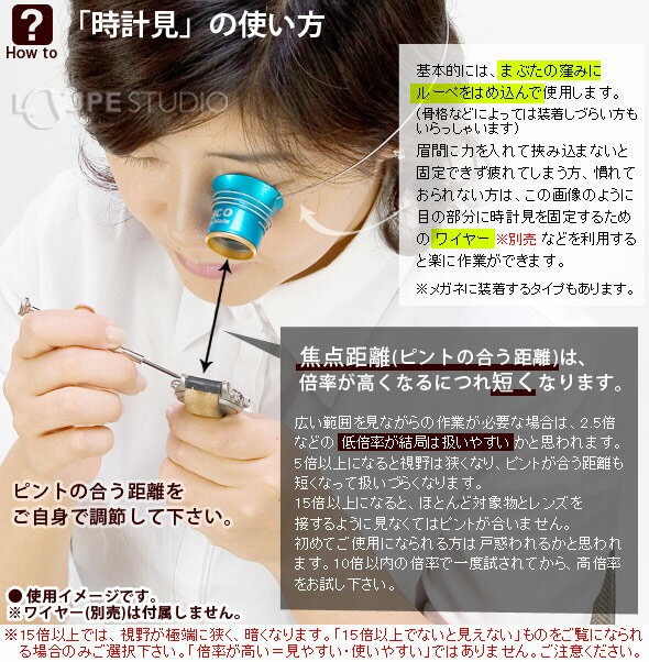 大体のピントの合う距離:2-4cm[個人差があります]時計の修理や精密部品検査等の作業に便利です。